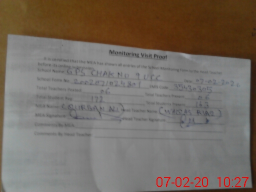 | EMIS Code: 35430305 | Name of School: GPS CHAK NO. 9 UCC | |||