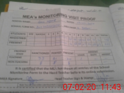 | Certified that this School was Inspected by the Undersigned MEA/DMO Today and the Information Stated Above is as Per Record. | |||||