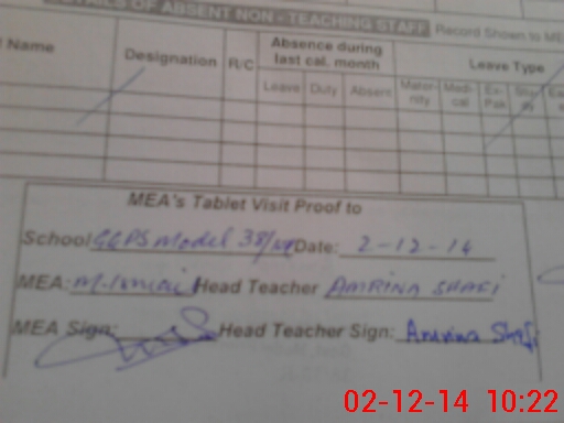 | Attendance Register | Head Teacher | MEA with School | Visit Proof |