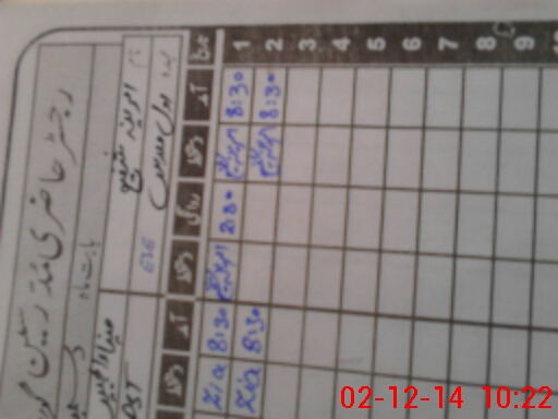 | CNIC | Full Name | Designation | R/C | Absence During Last Calender Month |