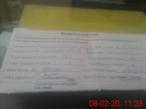 | District: LAHORE | Tehsil: RAIWIND | Markaz: SECONDARY-WING | Level: High | |