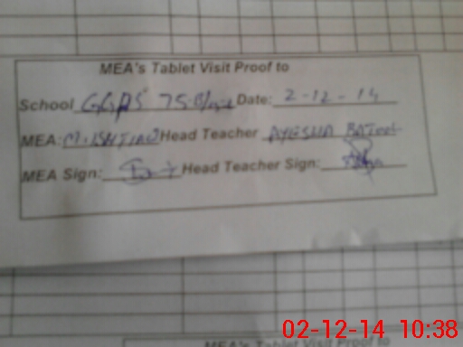 | Attendance Register | Head Teacher | MEA with School | Visit Proof |