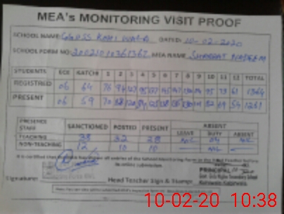 | Attendance Register | Head Teacher | MEA with School | Visit Proof |