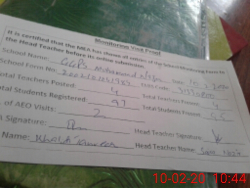 | Certified that this School was Inspected by the Undersigned MEA/DMO Today and the Information Stated Above is as Per Record. | |||||
