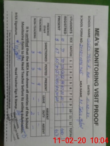 | Attendance Register | Head Teacher | MEA with School | Visit Proof |