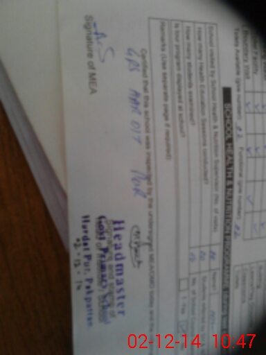 | Attendance Register | Head Teacher | MEA with School | Visit Proof |