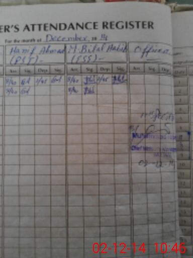 | Name: SH**** AH**** Designation: (School Headmaster's/Headmistress's) PST Phone/Cell Number: 03**** |