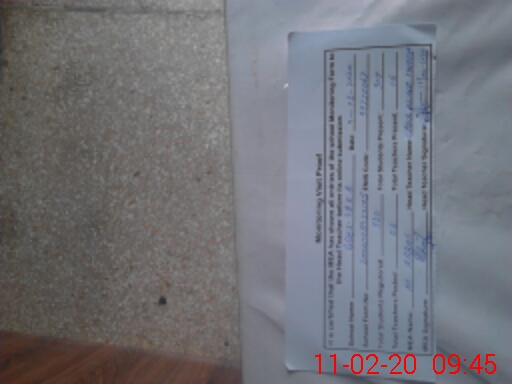 | School Visited by School Health & Nutrition Supervisor (No. of Visits) | 1 | Name1: | KASHIF | Name2: | NIL |