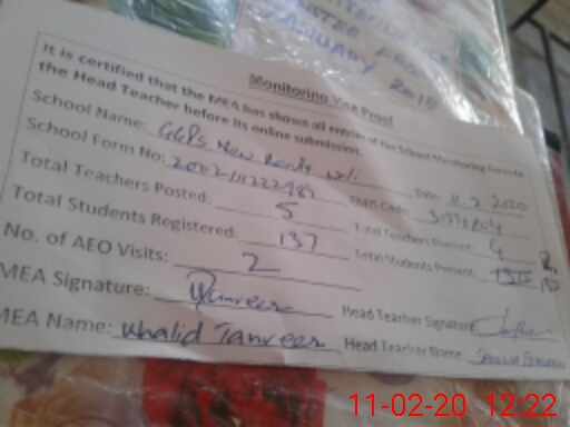 | EMIS Code: 31330804 | Name of School: GGPS NEW KANDAY WALI | |||