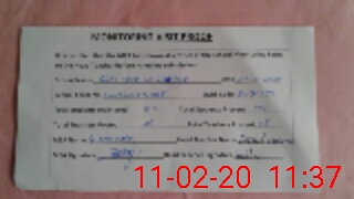 | Monitoring Date: 11-02-2020 | Start Time: 11-02-2020 10:57 AM | End Time: 11-02-2020 11:37 AM | Name of MEA: GH**** MU**** BN**** | |