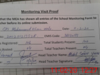 | EMIS Code: 36130193 | Name of School: GPS MUHAMMAD KHAN WALA P/O JAL WALA | |||