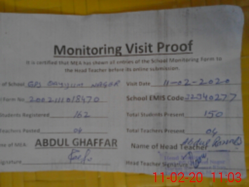 | EMIS Code: 32340277 | Name of School: GPS QAYYUM NAGER | |||
