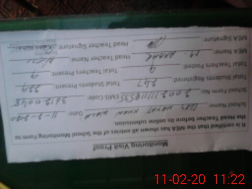 | Attendance Register | Head Teacher | MEA with School | Visit Proof |