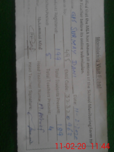 | EMIS Code: 32320963 | Name of School: GPS SURMAY DANI | |||