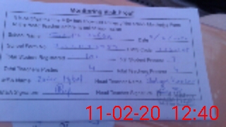 | Monitoring Date: 11-02-2020 | Start Time: 11-02-2020 12:27 PM | End Time: 11-02-2020 12:41 PM | Name of MEA: Za**** Iq**** BN**** | |