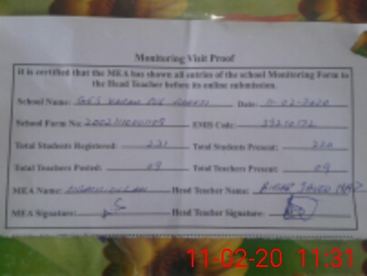 | Attendance Register | Head Teacher | MEA with School | Visit Proof |