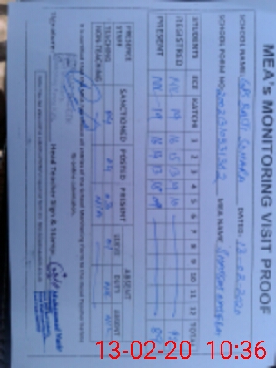 | Attendance Register | Head Teacher | MEA with School | Visit Proof |