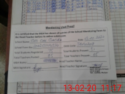 | Attendance Register | Head Teacher | MEA with School | Visit Proof |