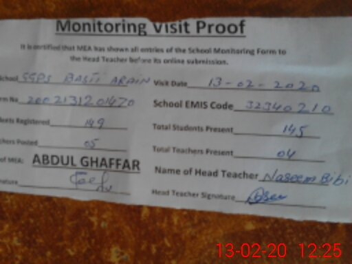 | EMIS Code: 32340210 | Name of School: GGPS BASTI ARAIN | |||