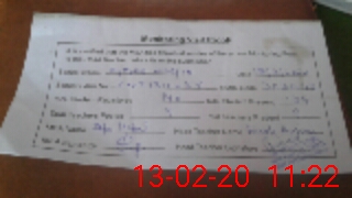 | Monitoring Date: 13-02-2020 | Start Time: 13-02-2020 11:06 AM | End Time: 13-02-2020 11:22 AM | Name of MEA: Za**** Iq**** BN**** | |