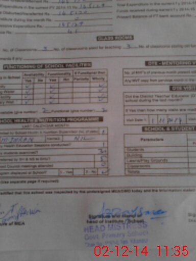 | Certified that this School was Inspected by the Undersigned MEA/DMO Today and the Information Stated Above is as Per Record. | |||||