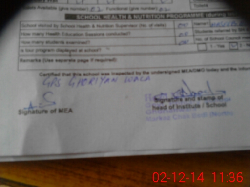 | Certified that this School was Inspected by the Undersigned MEA/DMO Today and the Information Stated Above is as Per Record. | |||||