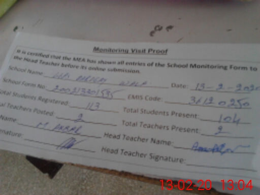 | Certified that this School was Inspected by the Undersigned MEA/DMO Today and the Information Stated Above is as Per Record. | |||||