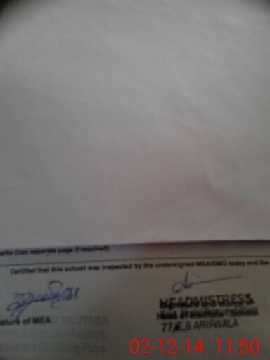 | Certified that this School was Inspected by the Undersigned MEA/DMO Today and the Information Stated Above is as Per Record. | |||||