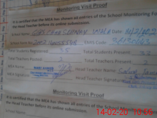 | Attendance Register | Head Teacher | MEA with School | Visit Proof |