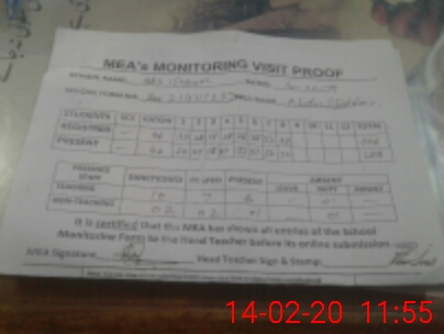 | Certified that this School was Inspected by the Undersigned MEA/DMO Today and the Information Stated Above is as Per Record. | |||||