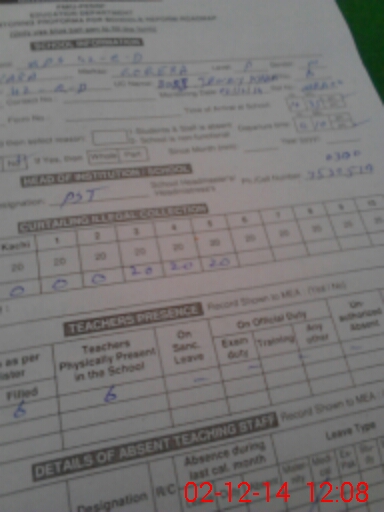 | Name: MJA**** Designation: (School Headmaster's/Headmistress's) PTC/JV Phone/Cell Number: 03**** |