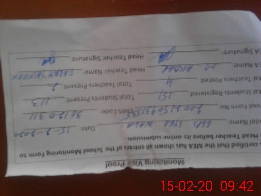| Attendance Register | Head Teacher | MEA with School | Visit Proof |