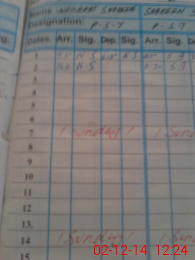 | CNIC | Full Name | Designation | R/C | Absence During Last Calender Month |