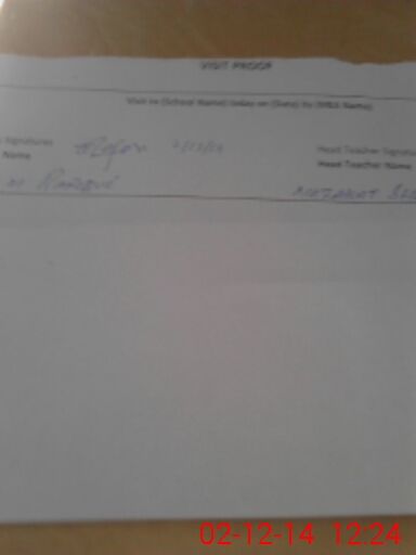 | Attendance Register | Head Teacher | MEA with School | Visit Proof |