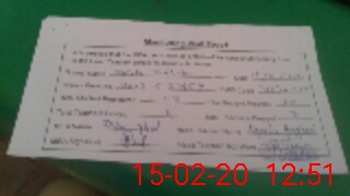 | Monitoring Date: 15-02-2020 | Start Time: 15-02-2020 12:33 PM | End Time: 15-02-2020 12:52 PM | Name of MEA: Za**** Iq**** BN**** | |