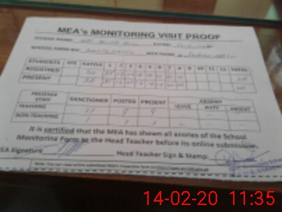 | Attendance Register | Head Teacher | MEA with School | Visit Proof |