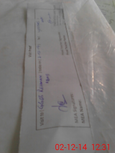 | Monitoring Date: 02-12-2014 | Start Time: 02-12-2014 12:17 PM | End Time: 02-12-2014 12:31 PM | Name of MEA: YO**** AL**** SH**** | |