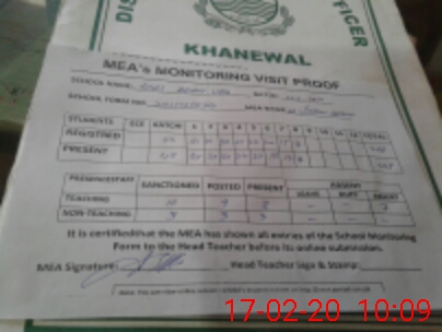 | Attendance Register | Head Teacher | MEA with School | Visit Proof |