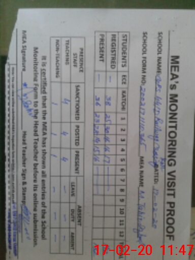 | Attendance Register | Head Teacher | MEA with School | Visit Proof |
