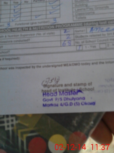 | Name: At**** Sa**** Ta**** Designation: (School Headmaster's/Headmistress's) PTC/JV Phone/Cell Number: 03**** |