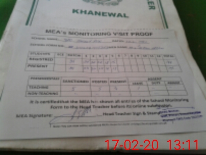 | Attendance Register | Head Teacher | MEA with School | Visit Proof |