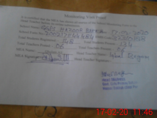 | EMIS Code: 32310188 | Name of School: GGPS HAZOOR BAKHSH | |||