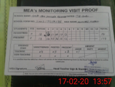 | Attendance Register | Head Teacher | MEA with School | Visit Proof |
