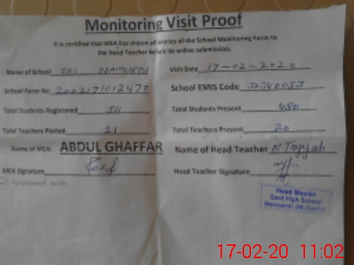 | Certified that this School was Inspected by the Undersigned MEA/DMO Today and the Information Stated Above is as Per Record. | |||||