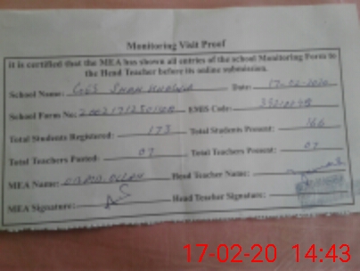 | Attendance Register | Head Teacher | MEA with School | Visit Proof |