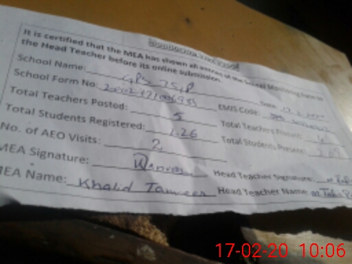 | EMIS Code: 31330373 | Name of School: GPS CHAK 75/NP | |||