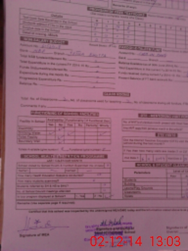 | Total no. of Classrooms: 2 No. of Classrooms Used for Teaching: 2 No. of Classrooms Storing Old Furniture, FTBs, etc: 0Comments if Any: Both classrooms are without doors and Windows |