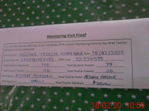 | EMIS Code: 32330599 | Name of School: GGCMS YASEEN KHAN WALA | |||