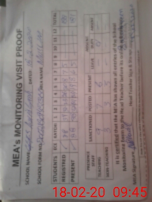 | Attendance Register | Head Teacher | MEA with School | Visit Proof |