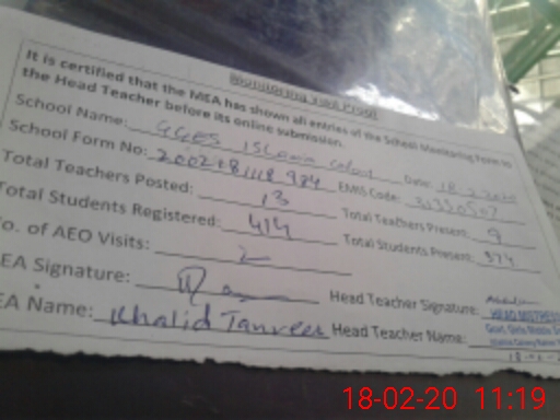 | EMIS Code: 31330507 | Name of School: GGES ISLAMIA COLONY | |||
